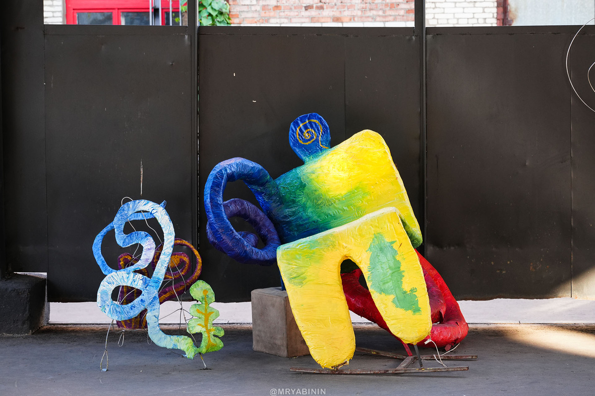 Так я чудом застал еще целыми инсталляции выставки-перформаса "Плечо опоры", прошедшей на территории арт-пространства Патефонка в Коломне. По-настоящему крутой движ, а учитывая возраст участников – вдвойне.
