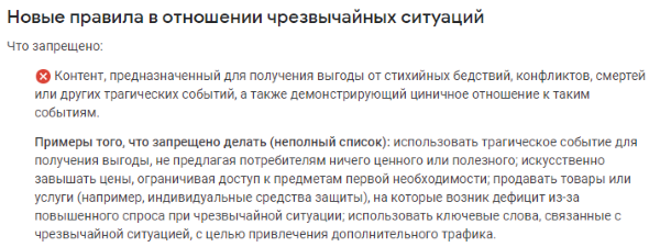 Google Ads сообщил об изменении правил в отношении недопустимого содержания. Новые правила касаются чрезвычайных ситуаций и уже вступили в силу.