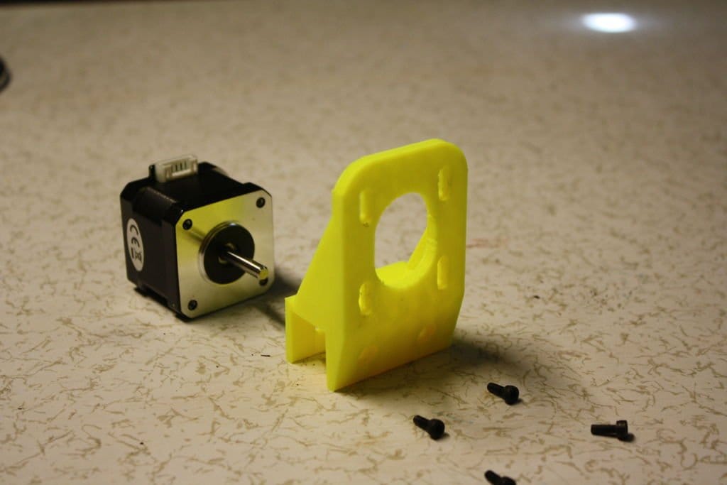 Шаговый двигатель, который будет управлять осями YZ, должен быть прикреплен к держателю YZ_Stepper_Holder. Мастер разработал деталь, чтобы можно было регулировать высоту установки шагового двигателя. Он рекомендует поставить их посередине и отрегулировать позже, если это необходимо. При сборке разъем должен быть направлен вверх.