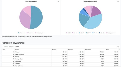 Авторам подкастов будут доступны общие цифры прослушиваний, статистика отрасль знаний, наука, в которой излагаются общие вопросы сбора, измерения, мониторинга, анализа массовых статистических (количественных или качественных) данных и их сравнение; изучение по каждому эпизоду, а также пол, возраст и география слушателей. Такие данные позволят лучше понимать свою аудиторию и будут полезны для коммуникации с рекламодателями, считают в «Яндекс.Музыке».