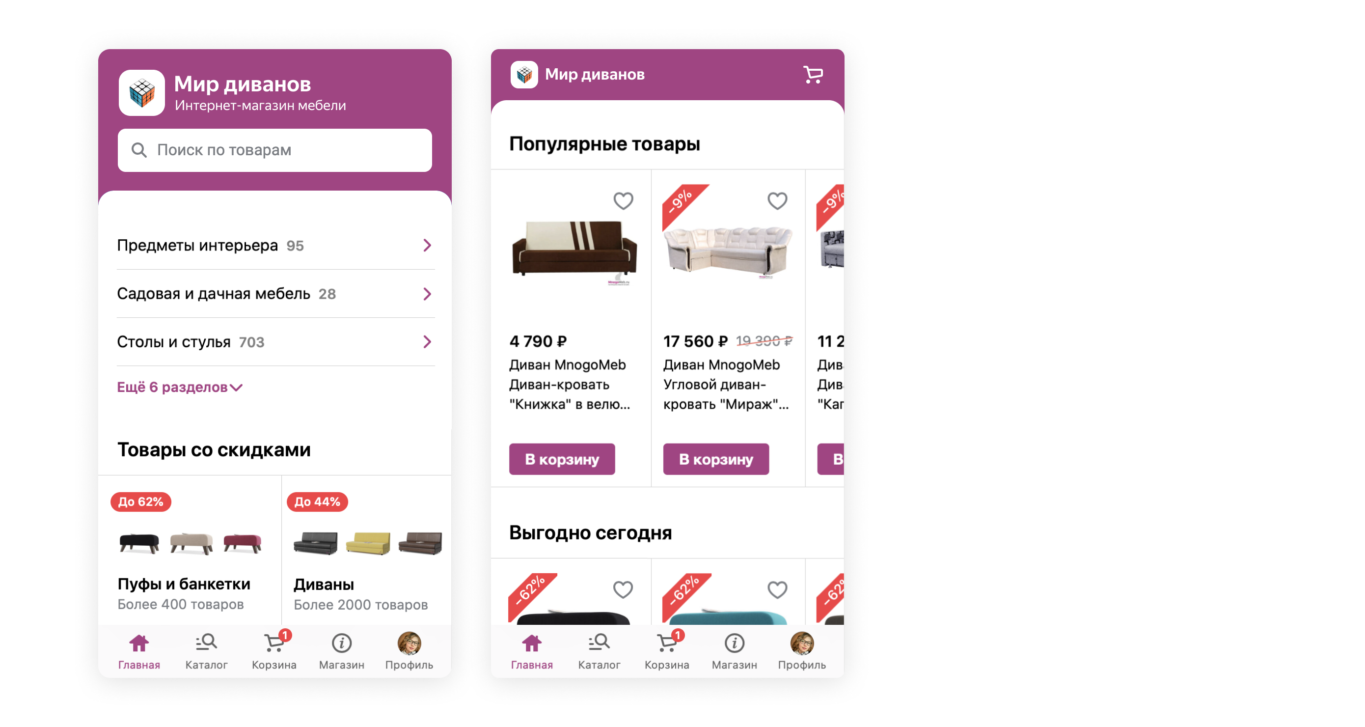 Карточки товаров в списках стали крупнее, детали товаров на миниатюрах — отчетливее, обновились бэйджи со скидкой и появилась возможность добавлять в Избранное по кнопке — прямо со списка.